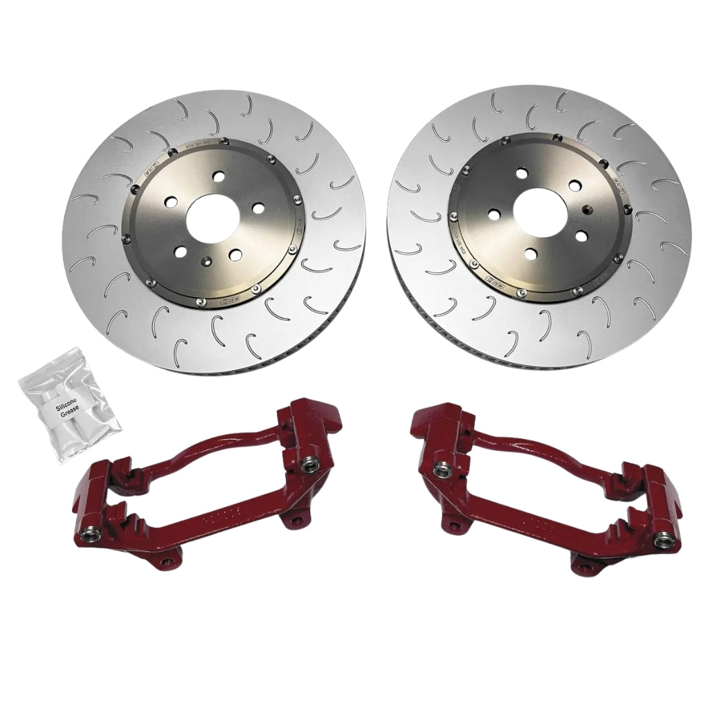 IL 034 Motorsport 375x34mm aggiornamento rotore freno anteriore flottante in 2 pezzi è l'aggiornamento definitivo per Volkswagen Mk8 Golf R e Audi 8Y S3Questo kit di alta qualità sostituisce i dischi freno e i supporti pinza originali ed è progettato per funzionare perfettamente con le pinze anteriori di serie. L'aggiornamento pesa solo 11,8 kg per disco, il che rappresenta una riduzione di 0,6 kg per curva rispetto ai dischi di fabbrica da 11,8 kg. Il peso ridotto non solo migliora le prestazioni complessive del veicolo, ma aumenta anche il diametro del disco da 357 mm a 375 mm. Ciò si traduce in una maggiore potenza frenante, una migliore risposta dei freni e spazi di arresto più brevi in diverse condizioni di guida 034 Sport motoristici Nonostante il peso ridotto, il disco mantiene una massa termica sufficiente a dissipare efficacemente il calore, grazie a 72 canali di ventilazione curvi che dirigono l'aria con forza attraverso il disco, dissipando rapidamente il calore. Questo è fondamentale durante l'uso intensivo, come in pista o sotto carichi pesanti, dove è necessario un raffreddamento costante per prevenire il surriscaldamento e la riduzione delle prestazioni di frenata. Le scanalature a J sulla superficie del disco aiutano a mantenere le pastiglie dei freni pulite da contaminanti e riducono al minimo la formazione di gas sotto le pastiglie, migliorando ulteriormente l'efficienza di frenata. Il "cappello" centrale del disco è realizzato in alluminio 6061-T6, resistente e leggero, un materiale utilizzato nell'industria aerospaziale. Questo offre una combinazione di durata e risparmio di peso. I dischi sono fissati tramite un supporto flottante con perni in acciaio, che consente loro di espandersi e contrarsi in sicurezza con le variazioni di temperatura senza il rischio di deformazioni o danni. Con questo aggiornamento, non solo si ottengono prestazioni di frenata migliorate e maggiore durata, ma anche costi di manutenzione a lungo termine ridotti. Una scelta perfetta sia per l'uso su strada che in pista.