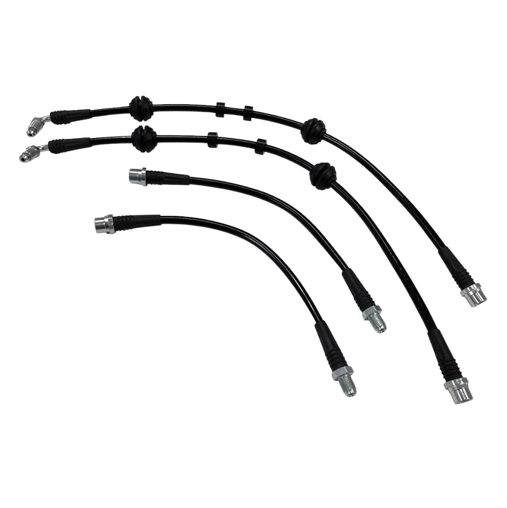 Sostituisci i tuoi tubi freno in gomma standard con le linee intrecciate in acciaio inossidabile ad alte prestazioni di 034 Sport motoristiciQuesti tubi freno intrecciati in acciaio inossidabile di alta qualità sono specificamente progettati per migliorare le prestazioni del tuo impianto frenante. A differenza dei normali tubi in gomma, che possono espandersi o gonfiarsi sotto la pressione della frenata, questo tubo intrecciato in acciaio inossidabile mantiene la sua forma e offre una sensazione di frenata costante. Ciò si traduce in prestazioni di frenata significativamente migliorate e maggiore sicurezza durante la guida 034 Sport motoristici Il kit di tubi freno in treccia di acciaio inossidabile è dotato di un rivestimento interno in Teflon per un'eccellente resistenza chimica e al calore. Il rinforzo in treccia di acciaio inossidabile offre maggiore durata e resistenza all'usura, mentre il rivestimento protettivo in PVC nero contribuisce a proteggere i tubi da agenti atmosferici e danni. Questi tubi freno sono realizzati secondo standard rigorosi e soddisfano o superano i test DOT e gli standard di costruzione, garantendo prestazioni affidabili e sicure. Sono facili da installare e sono specificamente progettati per adattarsi sia alla parte anteriore che a quella posteriore del veicolo. Con questo kit, godrai di prestazioni di frenata migliorate, una risposta più diretta e un'esperienza di guida più sicura. Aggiorna il tuo impianto frenante con i tubi freno in treccia di acciaio inossidabile di 034Motorsport e scopri la differenza!
