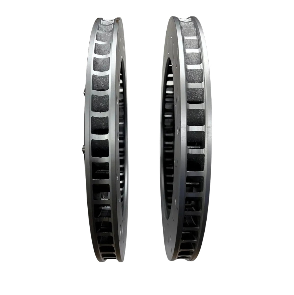 IL Kit di aggiornamento del disco freno anteriore flottante 034 Motorsport da 390 mm x 34 mm in 2 pezzi Il kit di sostituzione completo per rotore freno e distanziali pinza per Audi R8 Gen 1 e 1.5 è progettato per funzionare perfettamente con le pinze di serie sulle R8 Gen 1 e 1.5. Questo kit di aggiornamento pesa circa 10,8 kg per rotore e riduce il peso rotante di 0,27 kg per angolo rispetto agli 11,1 kg dei rotori di serie. Questo design che consente di risparmiare peso consente ai rotori non solo di essere più leggeri, ma anche di mantenere la corretta massa termica per catturare e dissipare efficacemente il calore. 72 palette curvate direzionalmente spingono l'aria di raffreddamento attraverso il rotore, ottimizzando la dissipazione del calore e migliorando le prestazioni di frenata complessive. Aumentando il diametro del rotore anteriore, la pinza di serie può fornire una maggiore forza frenante. Questo rotore anteriore più grande offre anche una migliore capacità di raffreddamento rispetto al rotore di serie, essenziale sia per la guida quotidiana che per l'uso intenso in pista. In termini di NVH (rumore, vibrazioni e ruvidità), 034 Dischi freno Motorsport in 2 pezzi Il feedback degli utenti ha dimostrato che trasmettono poco o nessun rumore all'interno dell'auto. Questo li rende adatti sia per applicazioni stradali che da corsa, bilanciando comfort di guida e prestazioni. Il design a J-slot sul disco aiuta a pulire le pastiglie dei freni e riduce il rumore rispetto ai tradizionali dischi forati, migliorando ulteriormente l'esperienza di guida complessiva.